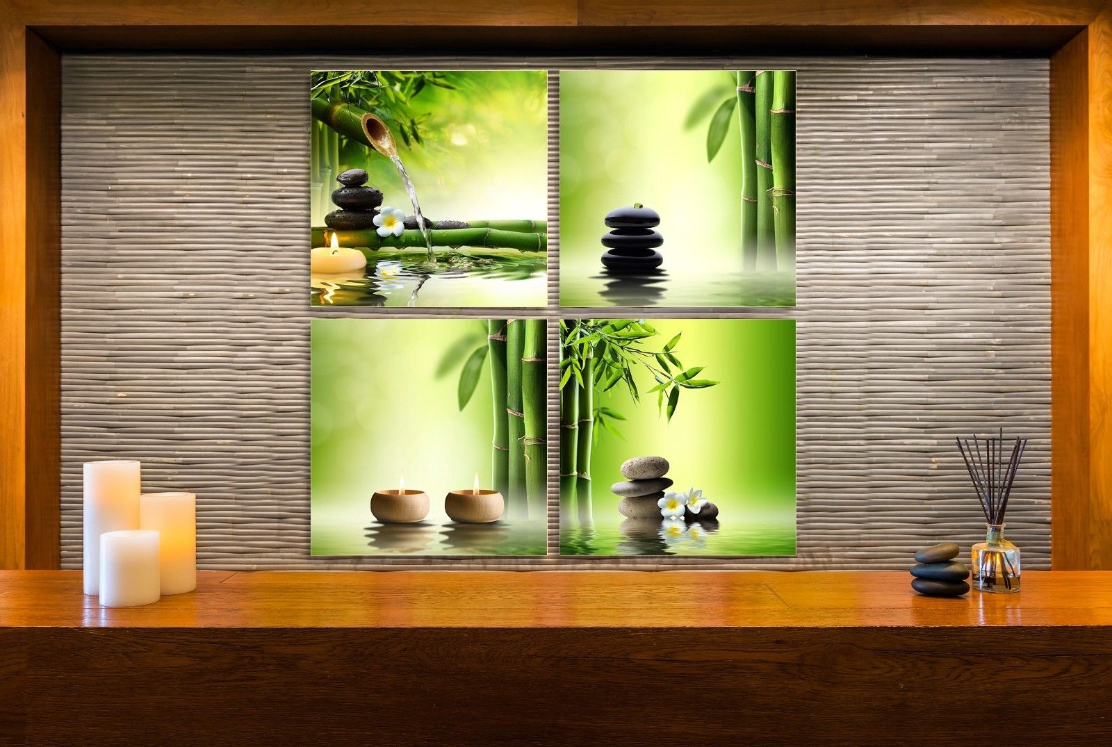 4pcs Framed Canvas Bamboo Green Nature Zen SPA Oil Stone massage shop Wall Decor