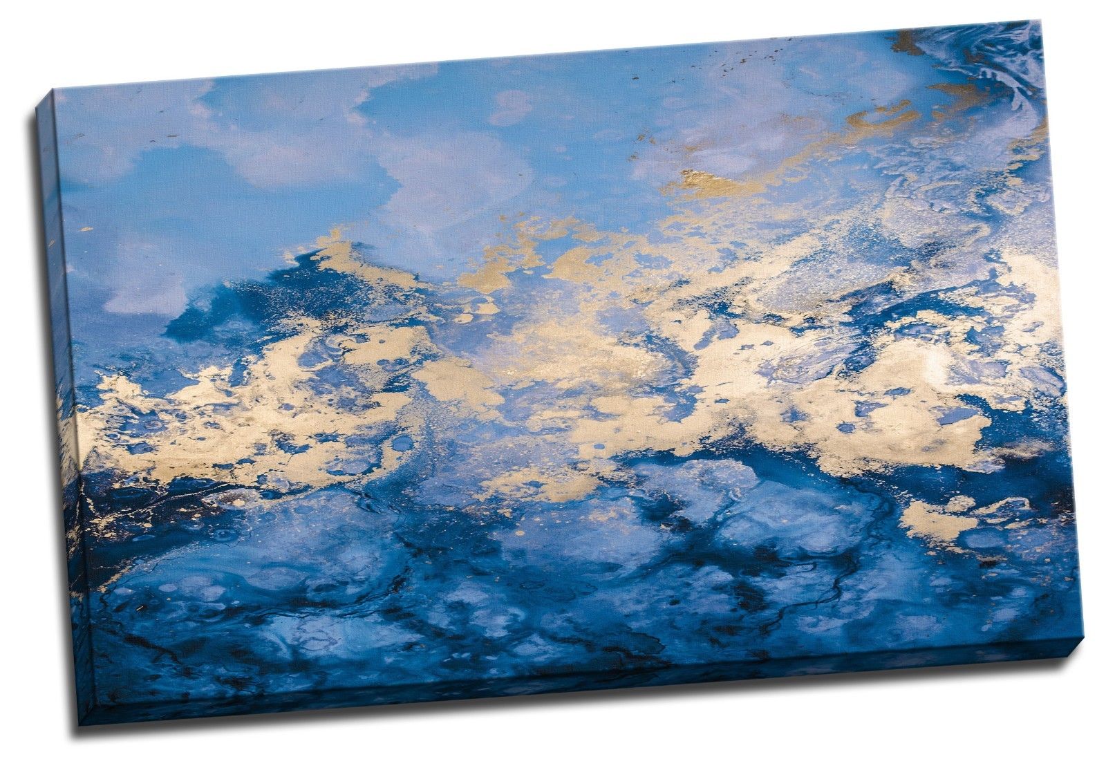 Abstract Blue Gold Framed Canvas Modern Wave Wall Art Stretched Print Prints