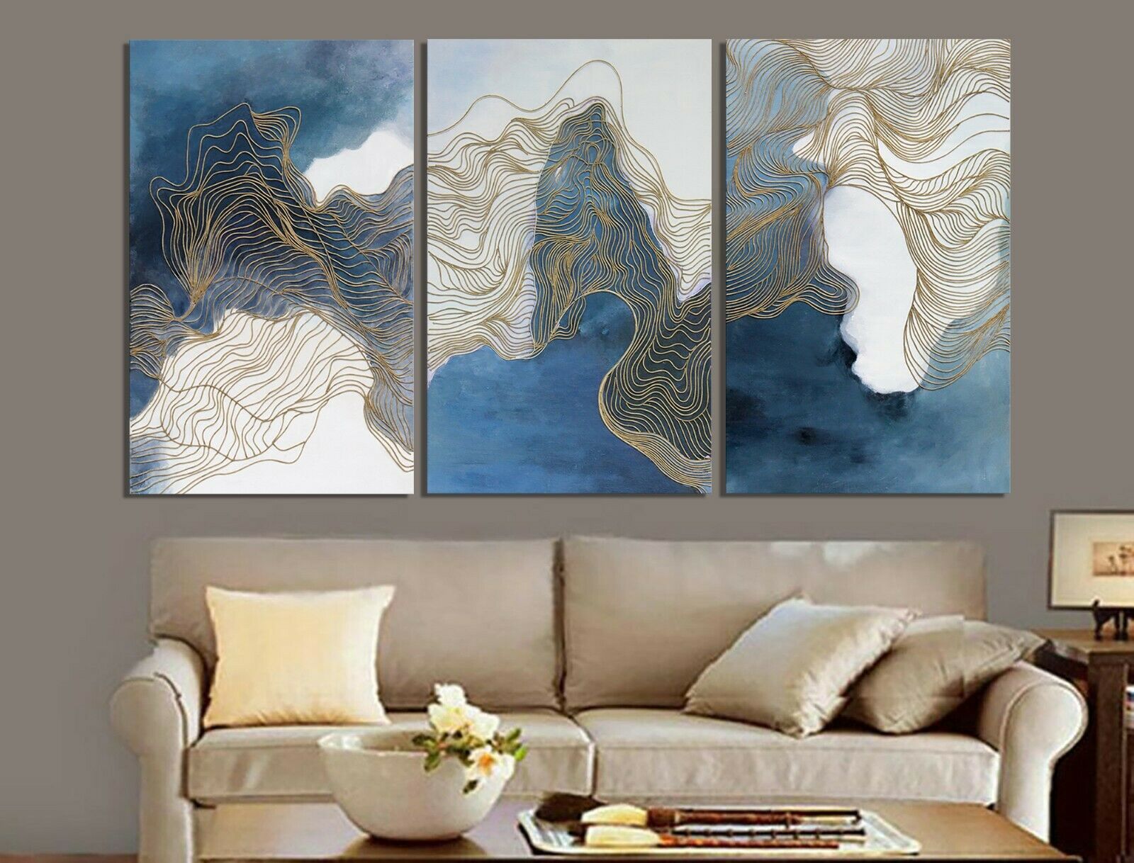 Abstract Blue Grey Gold Framed Canvas Prints Modern Wall Art Home Decor Print