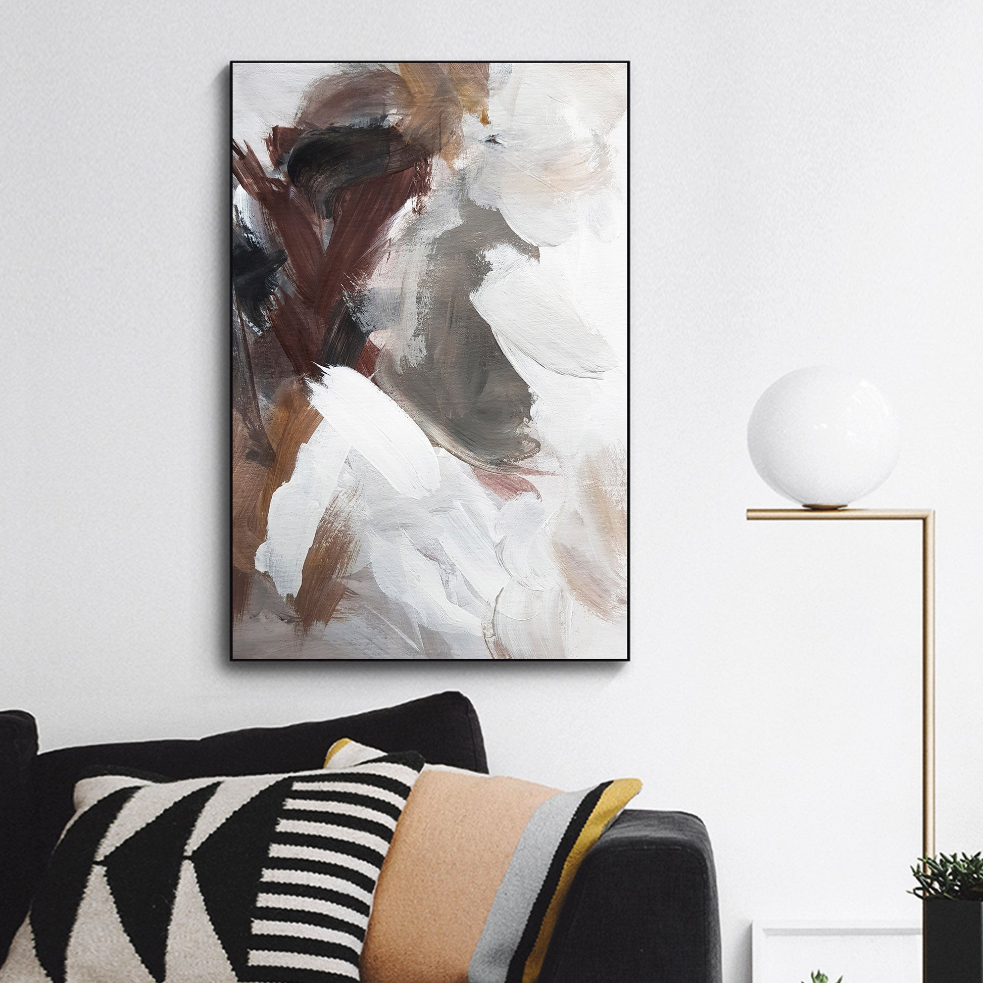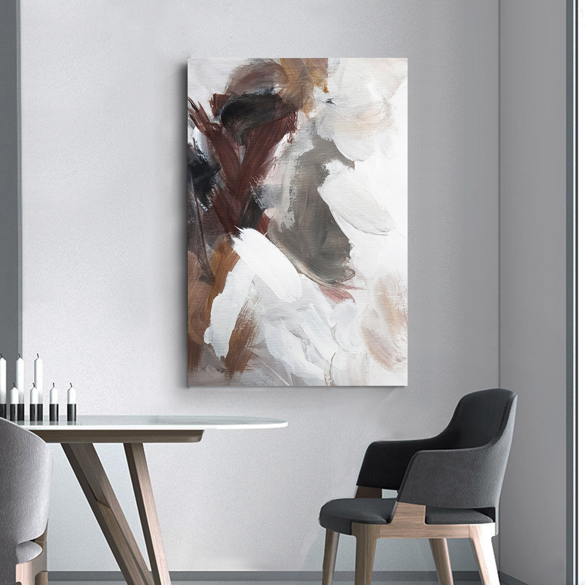 Abstract Brown White Framed Canvas Wall Art Print Ready to Hang Wall Prints