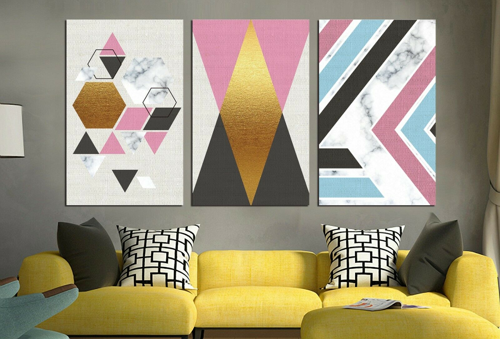 Abstract pink gold black Framed Canvas Prints Modern Wall Art Geometry Triangle