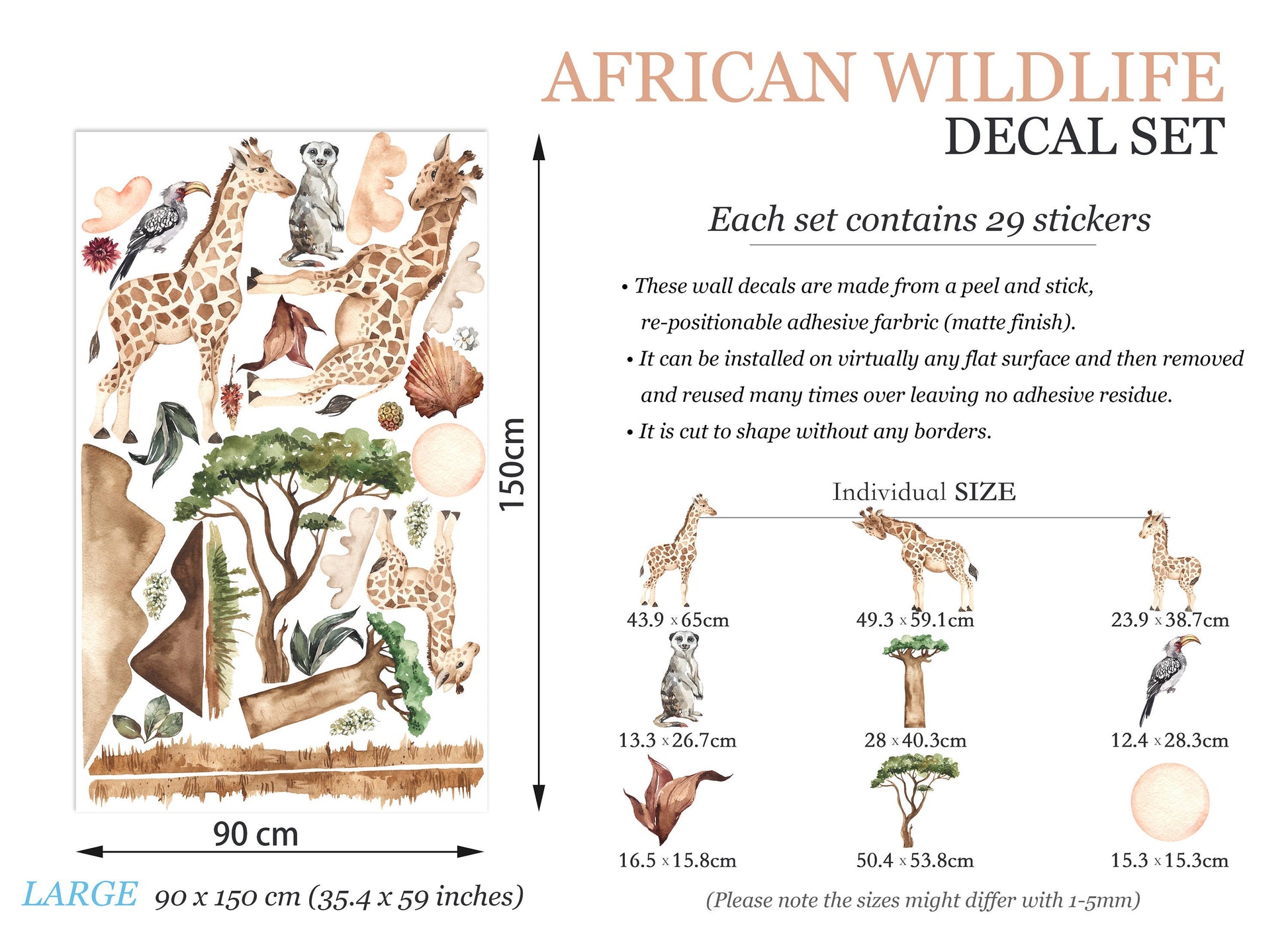 African Savannah Giraffe Family and Meerkat Wall Decal - Removable Peel and Stick - BR148