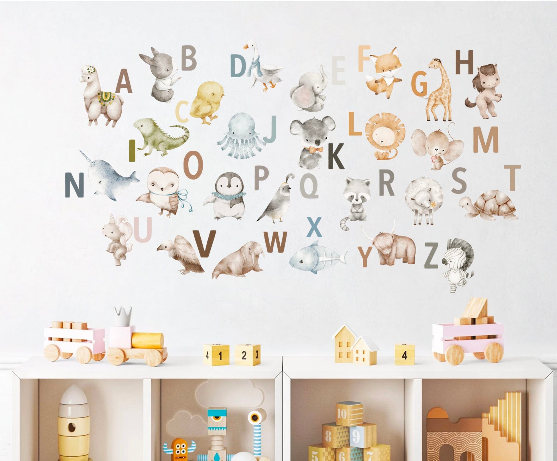 Animal Alphabet Decals - A to Z Wildlife Initials Wall Decal - Peel and Stick Removable - BR370