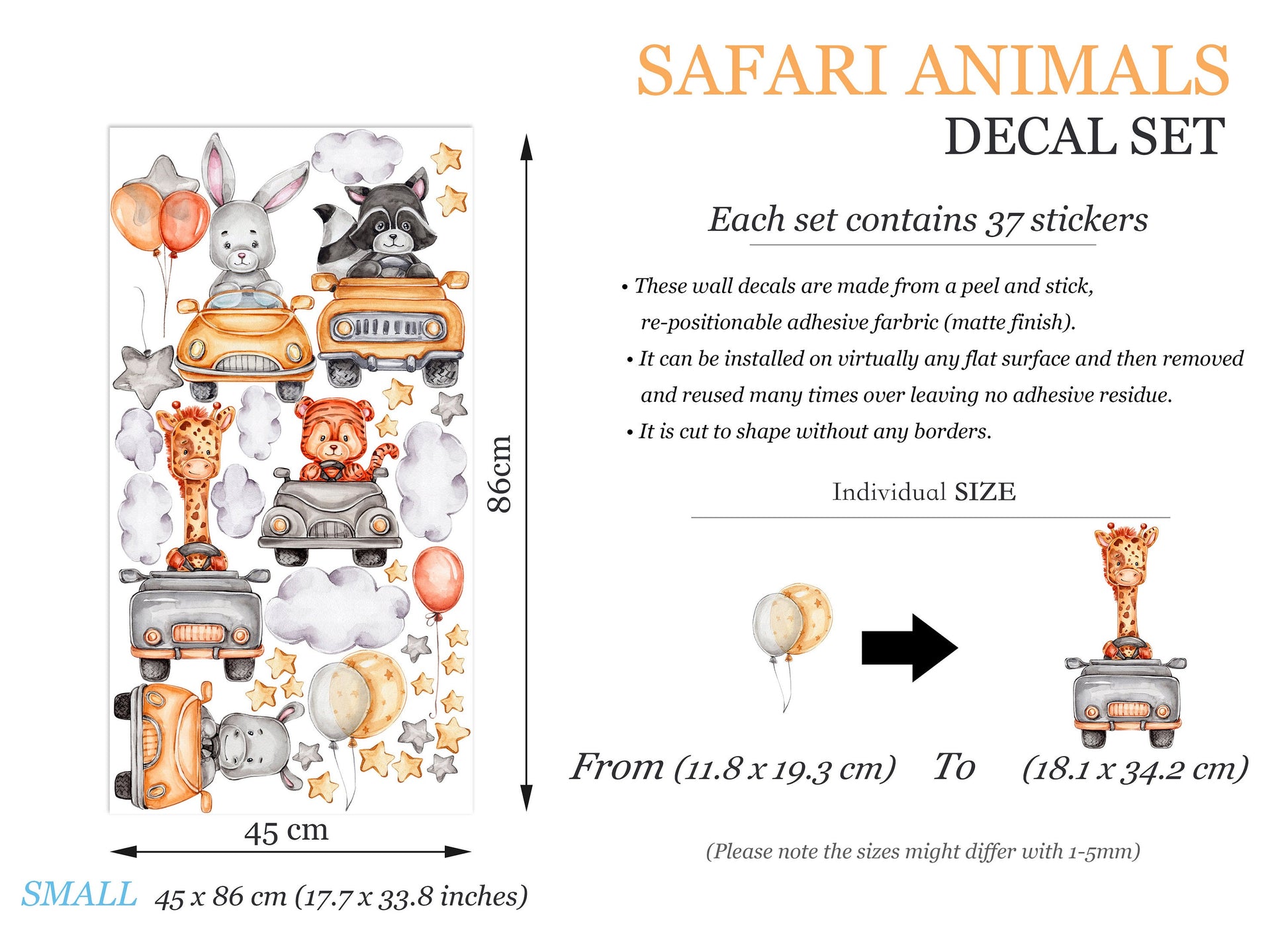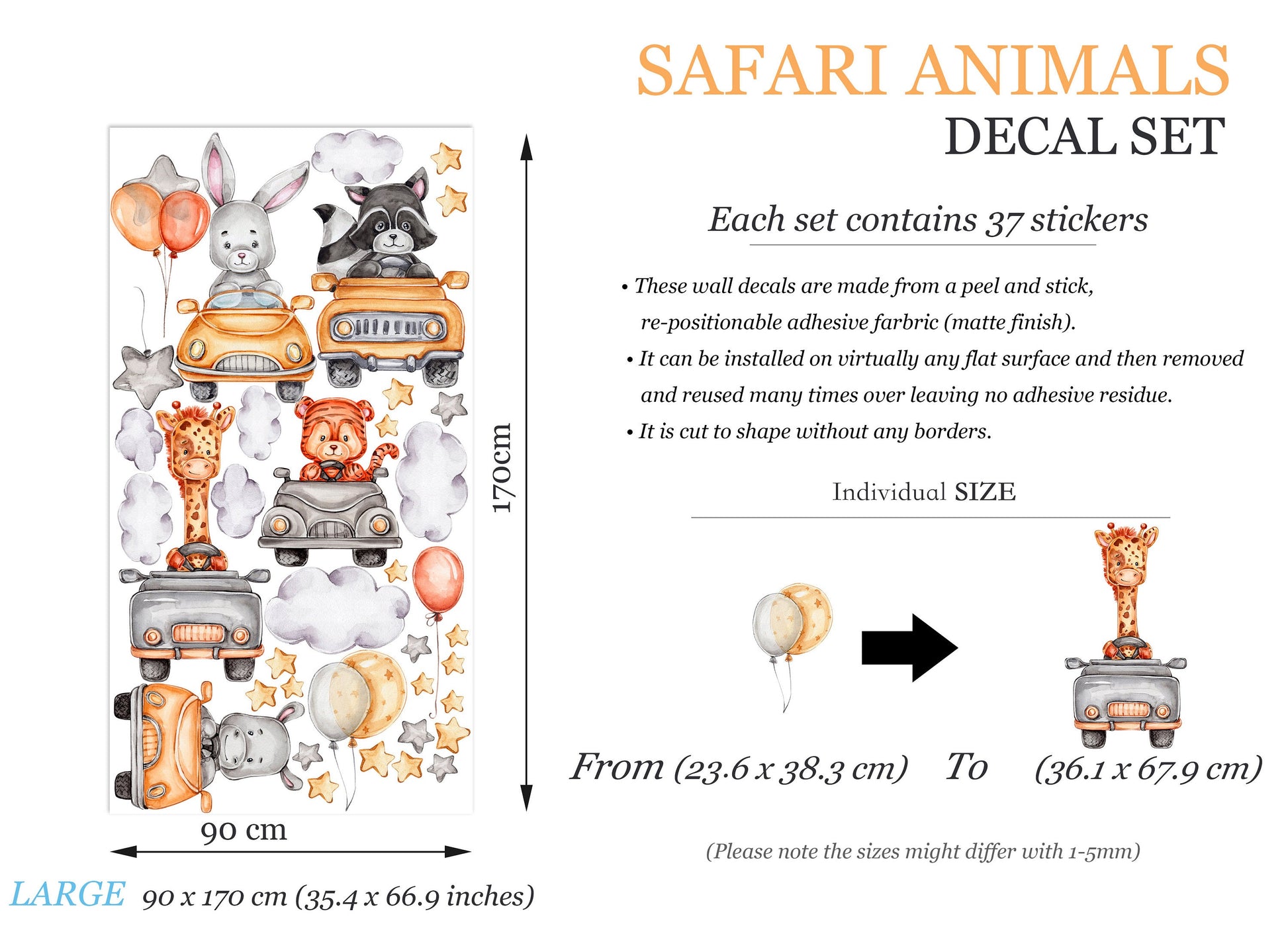 Animal Car Ride Wall Decal - Giraffe Rabbit Cow Tiger Raccoon - BR274