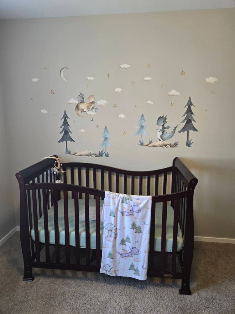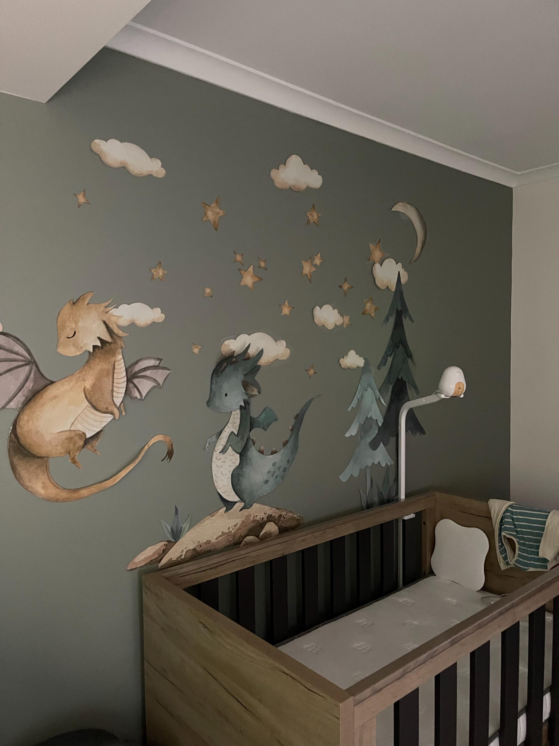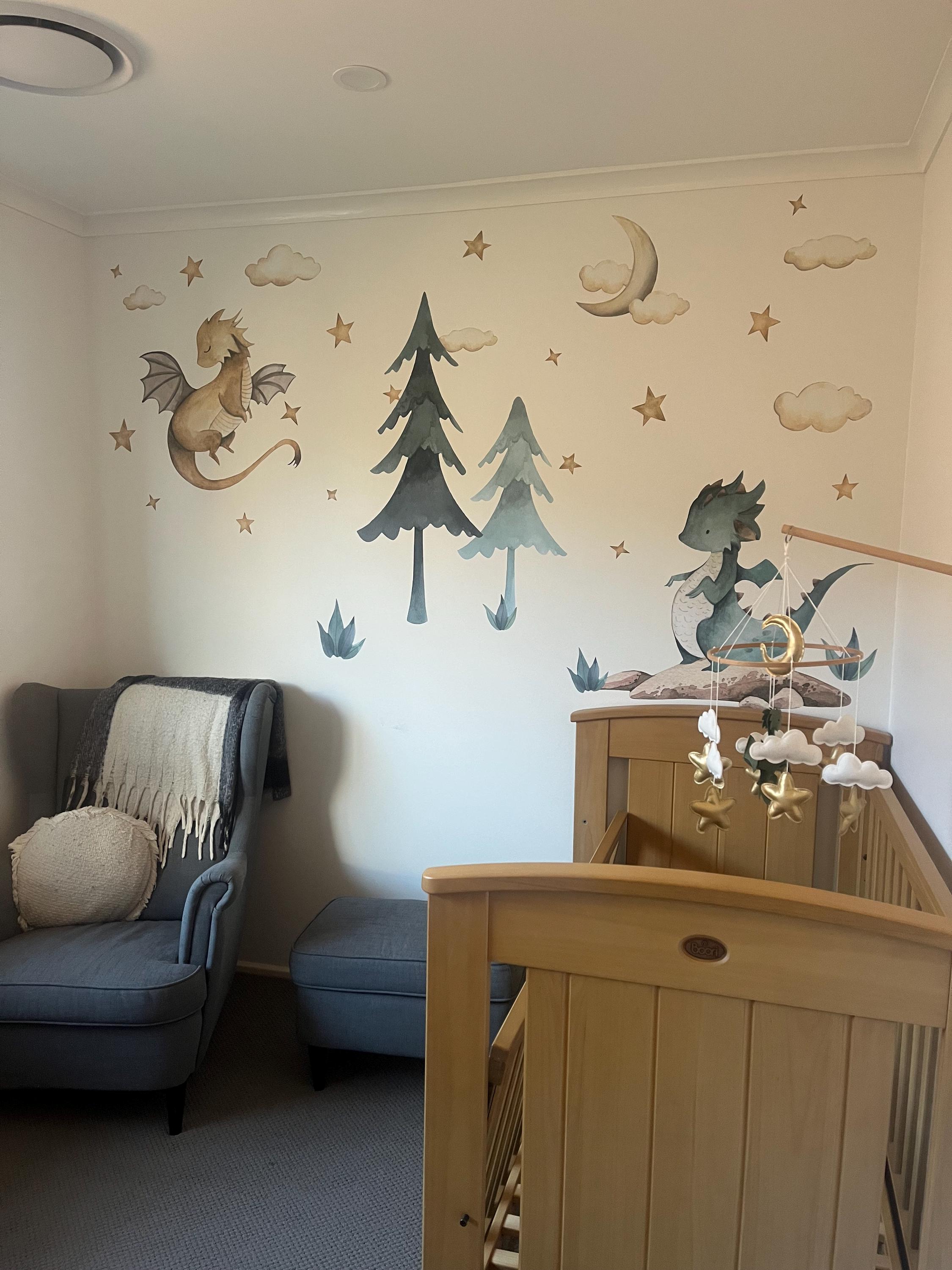 Baby Dragon Resting Under Stars Moon Trees Wall Decal - Removable Peel and Stick - BR426