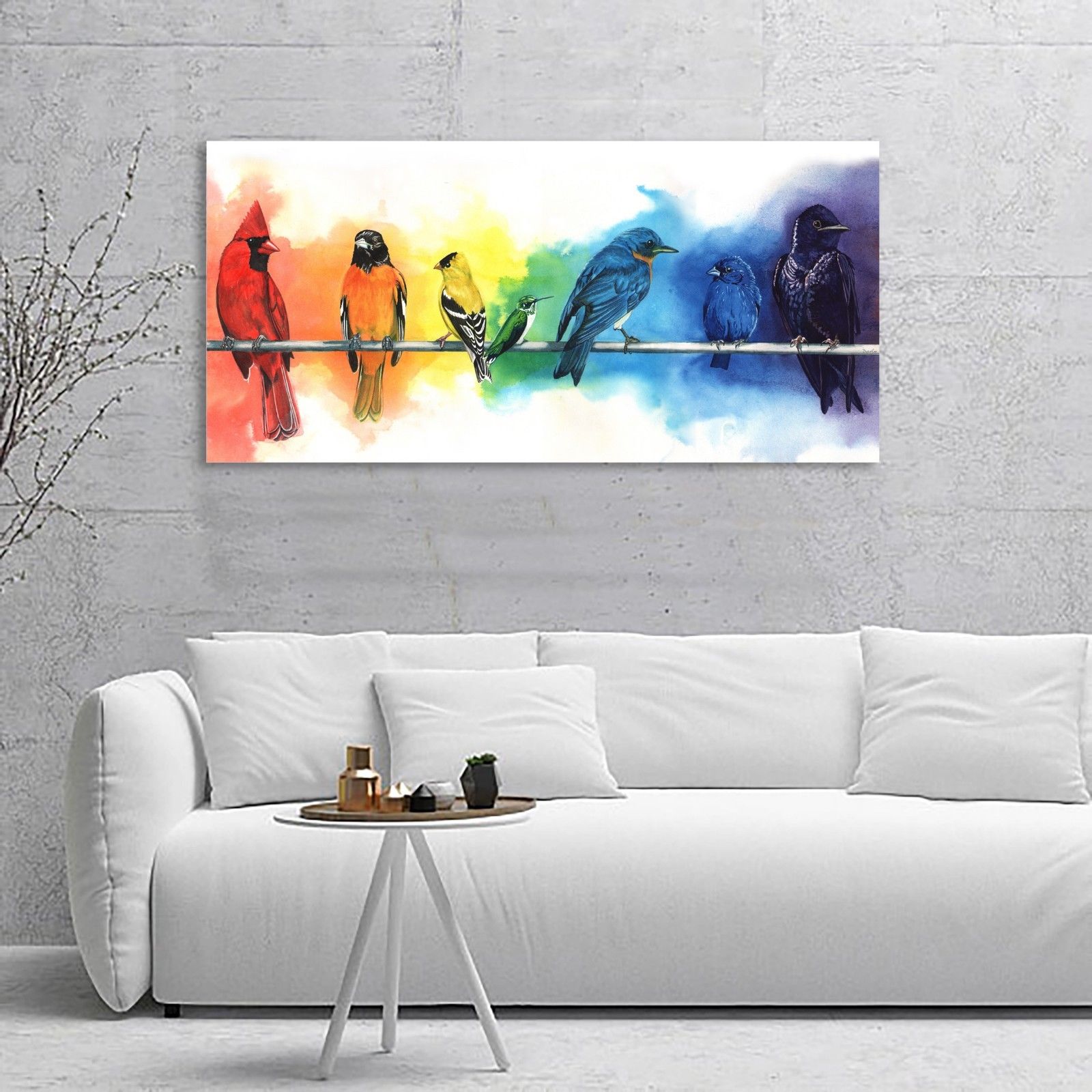 Colorful Rainbow Birds Stretched Canvas Prints Wall Art Decor Framed Painting