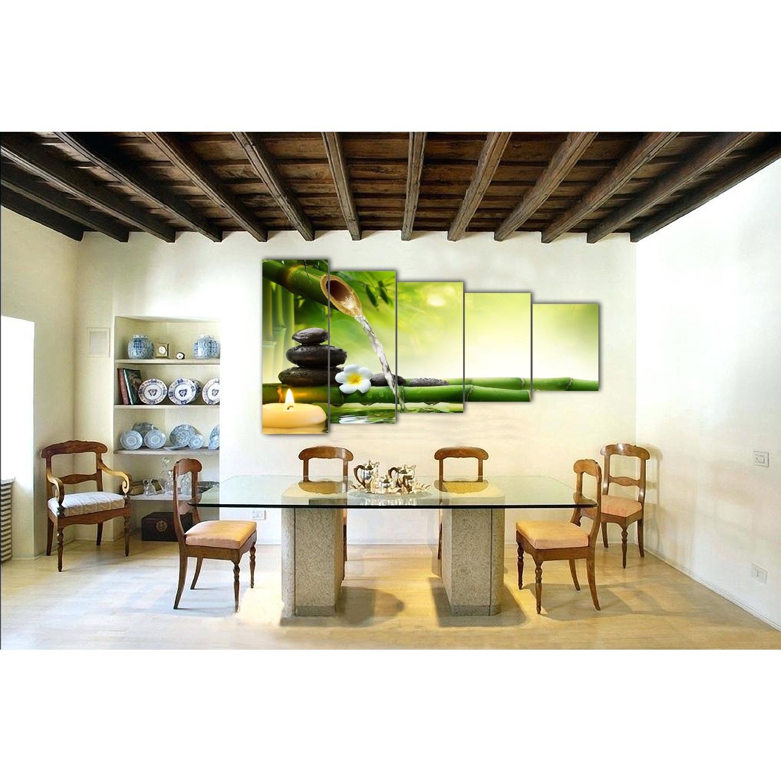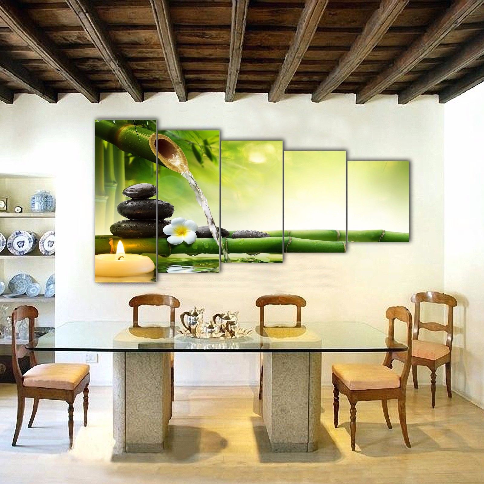 Zen Canvas Flower Frangipani bamboo fountain water stone